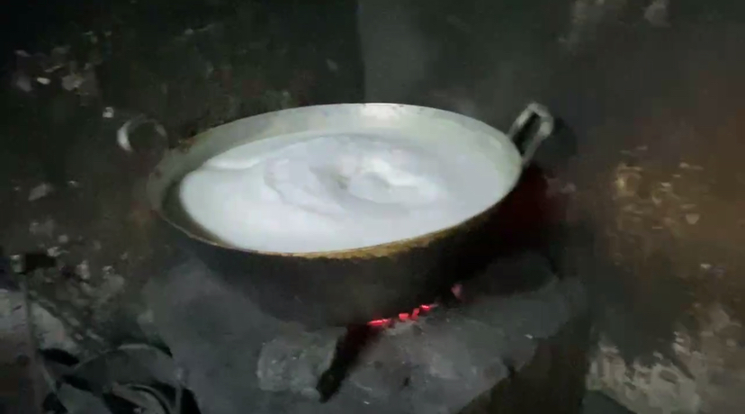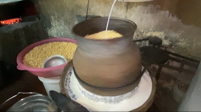At 2 - 3 in the morning, the makers have to wake up, wash the beans, grind, filter twice, and boil on a big charcoal stove. Mrs. Hong's house still maintains the tradition of cooking in a charcoal oven because when it boils, the beans will swell evenly and ripen. Additionally, cooking manually like this also helps enhance the flavor of the beans when eaten.
